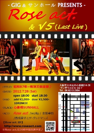 Rose act.ライブの合間に挟み込む形で√5コーナーを設け解散ライブを行う。